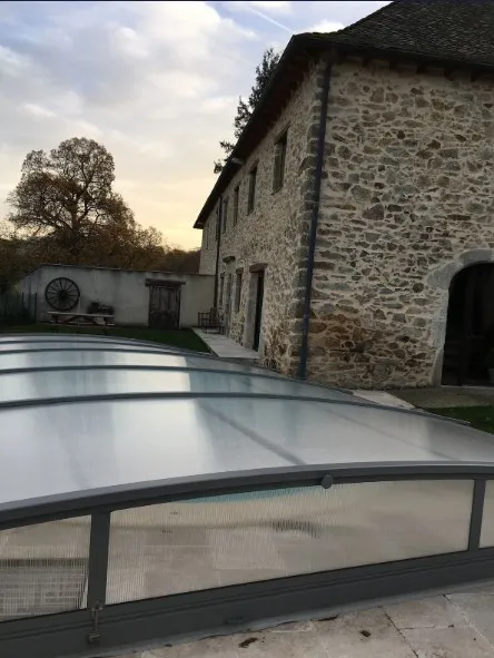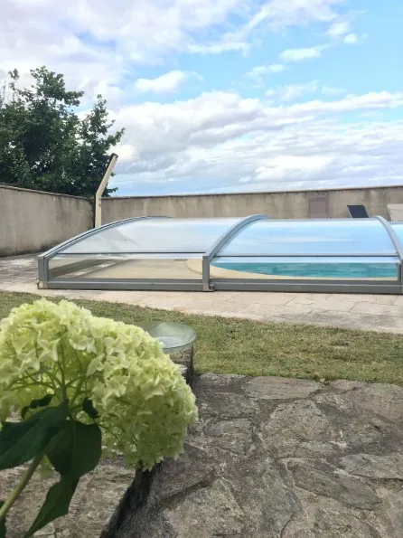 Jardin de 250 m² clos et privatif, piscine couverte par un abris coulissant (5 m x 10 m).